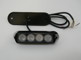 Faretto direzionale a 4 LED da 3 W blu, diverse frequenze di lampeggio selezionabili, sincronizzabile con altri dello stesso tipo, doppio attacco incasso/esterno (con mostrina) a 2 viti, 12/24V, alte prestazioni  TOP DI GAMMA.