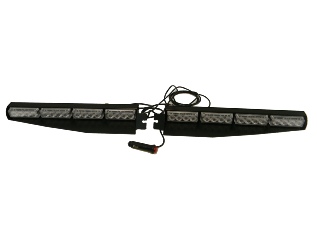 Dispositivo sequenziale ad alta visibilità da posizionare all'interno del veicolo, a tetto, rivolto verso il vetro anteriore. Diviso in due sezioni (da posizionare ai lati dello specchio retrovisore), ognuna con 16 Led ad alta visibilità da 1W, 15 differenti opzioni di lampeggio selezionabili, 12V Blu. Il dispositivo può essere utilizzato in alternativa a quelli magnetici da esterno vettura sui veicoli ad uso promiscuo.