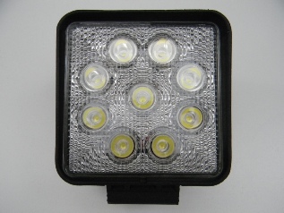 Faro da lavoro professionale, alte prestazioni, rettangolare, 9 LED da 3W (flood 60°), 10/30V.