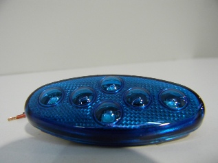 Segnalatore lampeggiante ausiliario ovale  a 4 LED, Serie Diamond, 10/30V, applicazione con adesivo strutturale su ogni superficie piana, blue.
