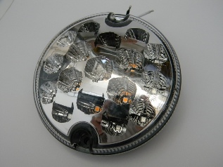Indicatore di direzione a LED diametro 95mm, fissaggio esterno, intercambiabile con analoghi prodotti a lampadina già in uso (spoiler ambulanza e fanaleria posteriore caravan).