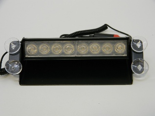 Segnalatore a LED da parabrezza (interno vettura) con attacco a ventosa, 8 LED da 3W, frequenze di lampeggio selezionabili, 12V.