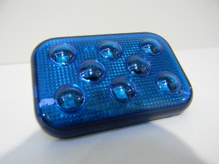 Segnalatore lampeggiante ausiliario rettangolare  a 4 LED, Serie Diamond, 10/30V, applicazione con adesivo strutturale su ogni superficie piana, blu.
