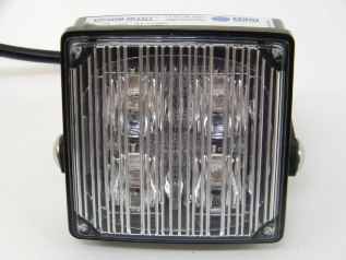 Faretto direzionale Vigiled, 4 LED da 1W blu, forma quadrata, frequenze di lampeggio selezionabili, doppio attacco con staffa e bullone o 4 viti.
